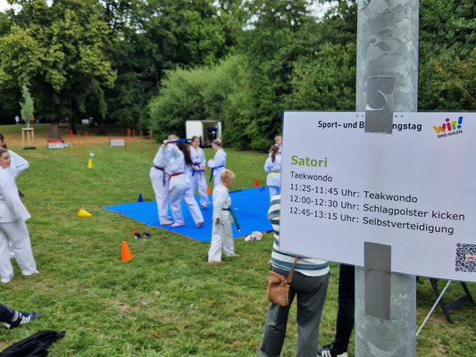 Am 13.07.2025 fand ein großes Event im Berliner Park statt. Viele Vereine zeigten ihr Sportprogramm und boten Kurse an. So war es besonders schön, dass Satori dank unserer Trainer und Mitglieder auch ein tolles Programm bieten konnten. Auf der Bühne zeigten unsere Sportler was alles zu unserem Sport dazu gehört. Begleitet mit Musik kam unsere kleine Darbietung richtig gut an. Mit einem Warmup angefangen übergehend in das Techniktraining zeigten unsere Sportler ihr Können. Mit viel Energie wurde anschließend das Kicken auf der Pratze, Selbstverteidigung, Akrobatik, Wettkampf und Formen gezeigt. Die Fotos findet dazu ihr unter Medien. Ein großes Dankeschön und Lob an unsere Trainer, Helfer und unsere Mitglieder.